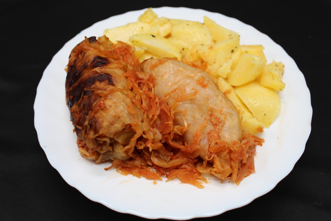 Plnená kapusta, varené zemiaky