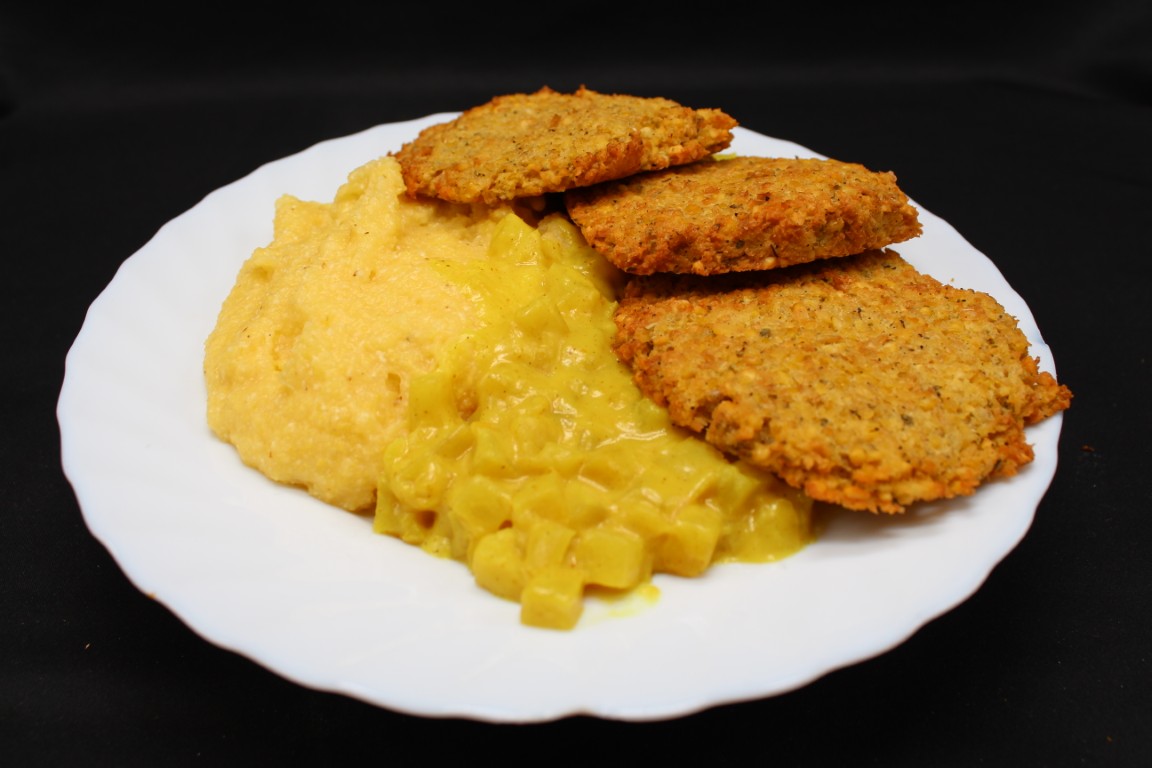 Cícerové fašírky, kalerábové karí, polenta